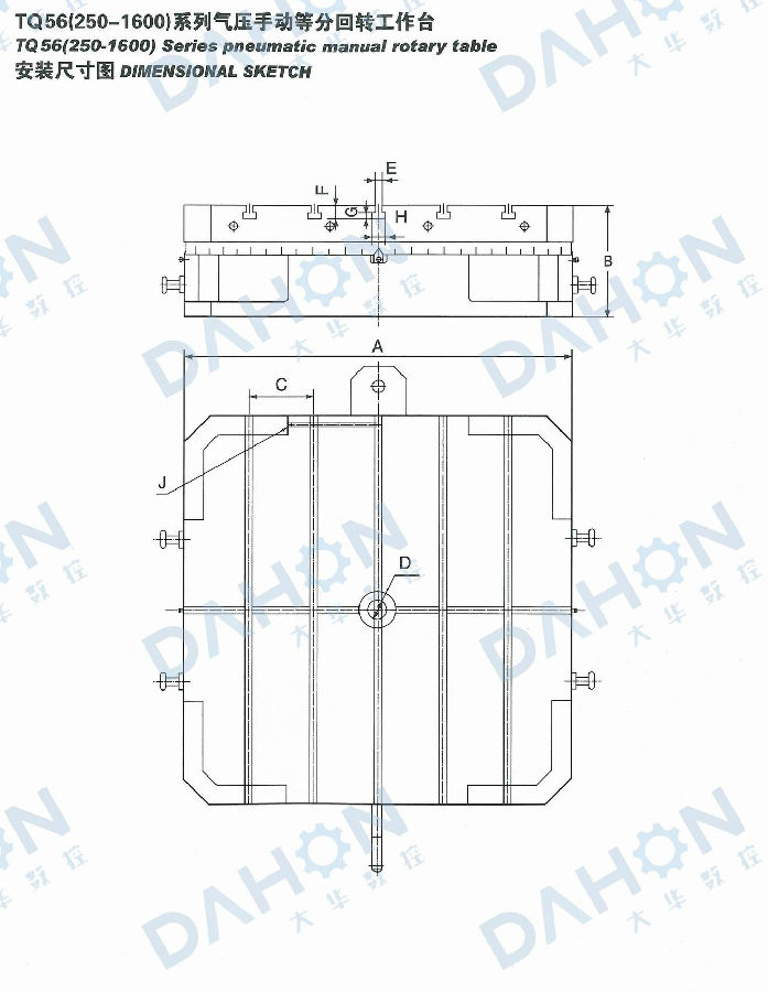 TQ56系列氣壓手動等分轉臺是以端齒盤為分度元件,氣壓抬起、手動轉位的高精度等分轉臺。它轉動力矩小、承載能力大、剎緊可靠,分度精度可達10”,重復度3”,適用于各類鏜、銑床、磨床等高精度加工場合。(可根據(jù)用戶需要設計制作其他規(guī)格)