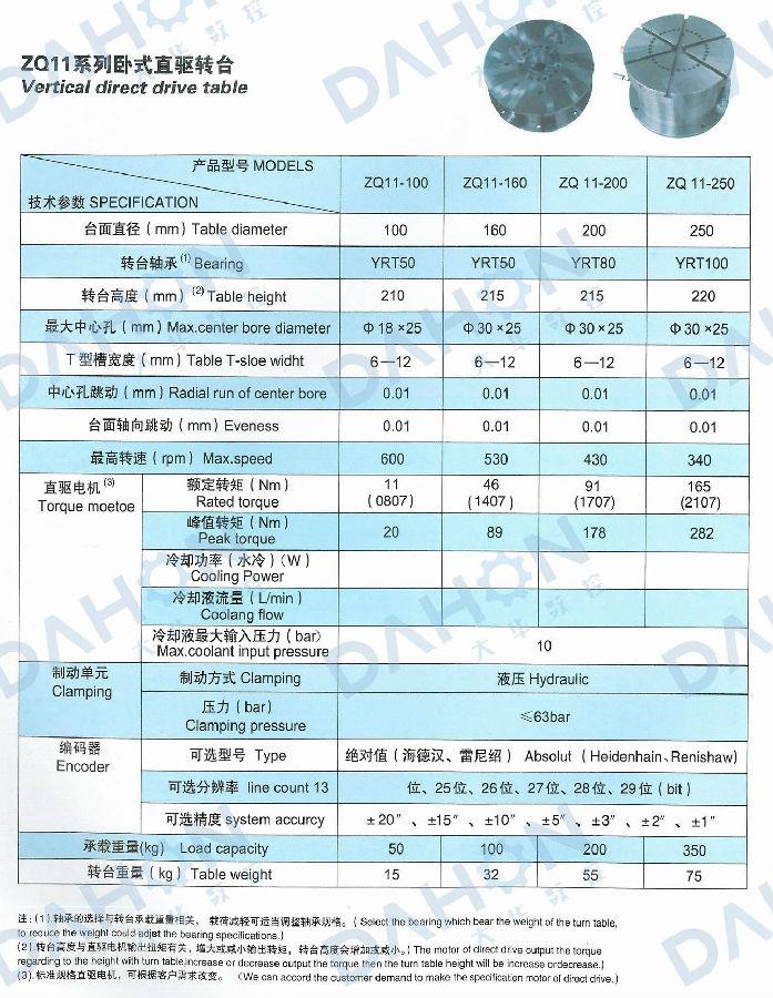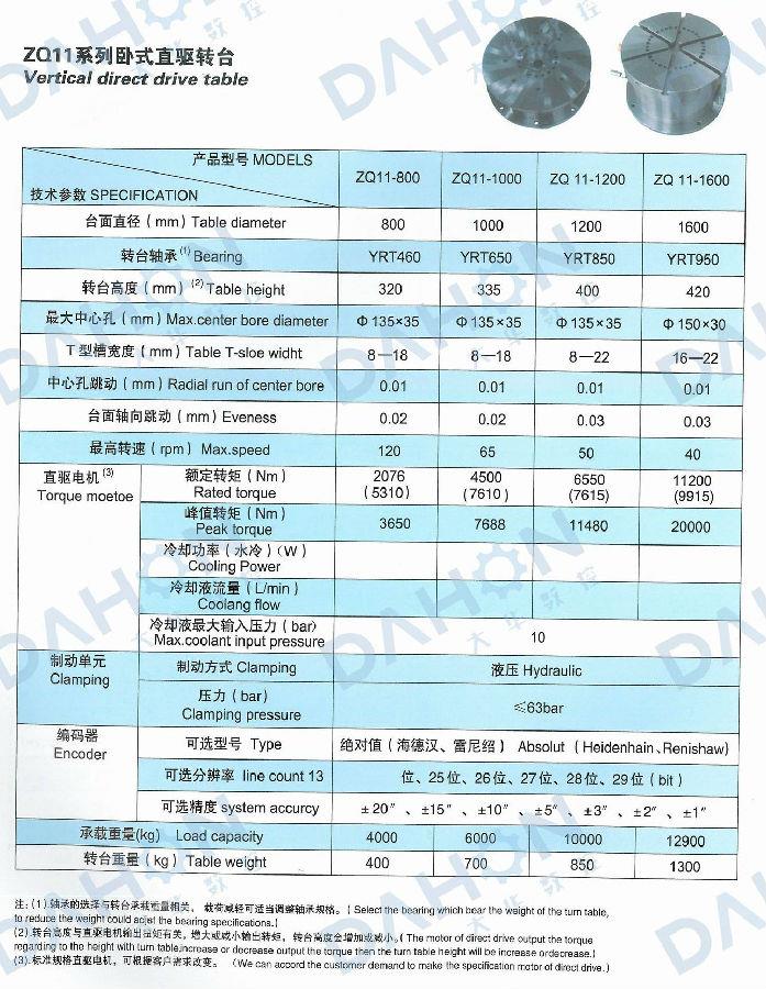 ZQ系列數(shù)控直驅(qū)回轉(zhuǎn)工作臺(tái)采用大扭矩力矩電機(jī)直接驅(qū)動(dòng),絕對(duì)編碼器為反饋信號(hào),可實(shí)現(xiàn)高精度的旋轉(zhuǎn)定位,是數(shù)控鏜銑床和加工中心的理想配套附件。工作時(shí),在主機(jī)相關(guān)控制系統(tǒng)控制下,能夠完成與主機(jī)相協(xié)調(diào)的各種必需的分度回轉(zhuǎn)運(yùn)動(dòng),實(shí)現(xiàn)等分、不等分的連續(xù)孔、槽、曲面的加工,且達(dá)到較高的精度。煙臺(tái)大華數(shù)控機(jī)床附件有限公司是數(shù)控機(jī)床附件設(shè)備的知名配套企業(yè),可生產(chǎn)多種型號(hào)臥式直驅(qū)轉(zhuǎn)臺(tái)產(chǎn)品,技術(shù)一流,可定制研發(fā)。