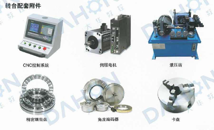 煙臺(tái)大華數(shù)控機(jī)床附件有限公司是數(shù)控機(jī)床附件設(shè)備的知名配套企業(yè),可生產(chǎn)多種型號(hào)數(shù)控轉(zhuǎn)臺(tái)配套產(chǎn)品,主要產(chǎn)品有CNC控制系統(tǒng)、伺服電機(jī)、液壓站、精密端齒盤、角度編碼器、卡盤等。設(shè)備先進(jìn),質(zhì)量一流,可接受客戶的特殊定制產(chǎn)品。